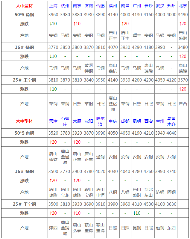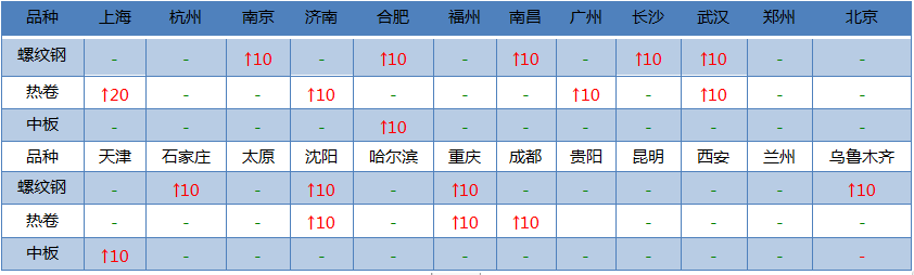 中板24個市場中2個市場上漲10,14-20mm普中板平均價格3967元/噸,較上個交易日上調1元/噸。