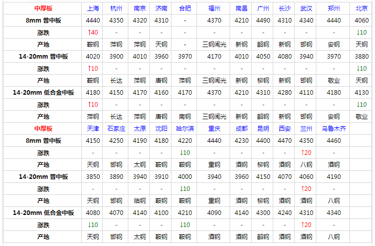 11月11日中厚板價格:個別調整;