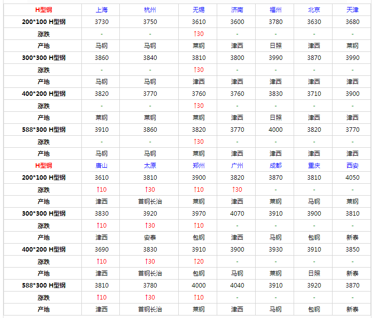 數據監測,今日共32家鋼廠調價,其中漲幅最高為沙鋼建材,調價幅度300元/噸,具體調價明細如下: