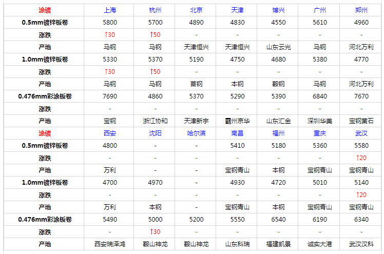 冷板部分上漲20-30元。不斷趨高后,下游拿貨情緒謹慎,市場實際成交情況不溫不火,一些規格開始有所讓利。受高成本、低庫存等因素支撐,下跌空間有限。預計冷軋板卷價格穩中堅挺。