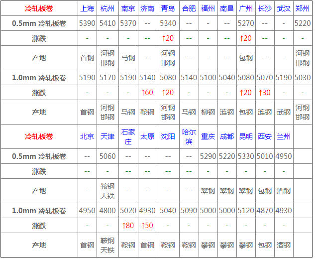 今日早盤期貨開盤延續昨日頹勢持綠,現貨市場價格也出現明顯走低,因為實際庫存和鋼廠情況差異,商家下調幅度在10-40元/噸不等,不過總體看,庫存較多的商戶輕倉出貨的心態占主導,但是下游采購意愿放緩,實際成交一般,不過新資源到倉成本較高,價格下調幅度也將有限。綜合考慮,預計短期冷軋板卷價格繼續整理。