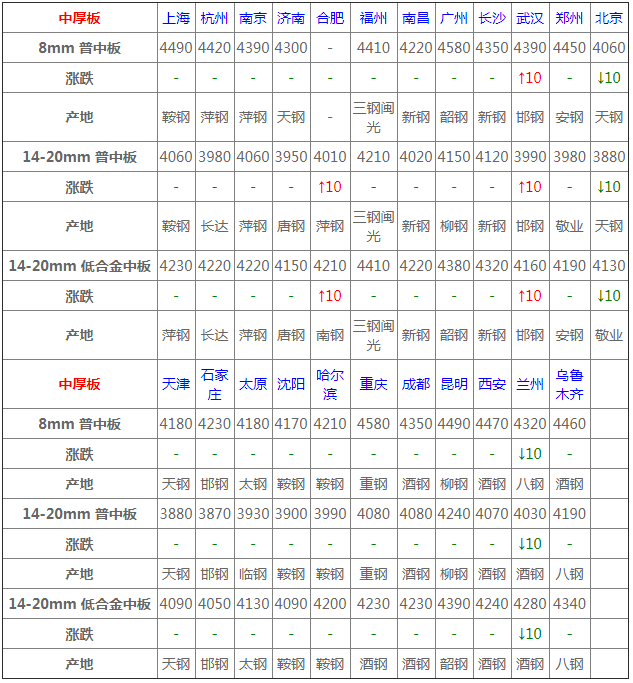 今中厚板報價主流偏弱。據了解情況來看,今期貨維持偏弱震蕩,早晨開市現貨氛圍低迷,商家心態難撐,報價接連下調積極出貨,然下游需求仍謹慎偏弱,低位交投平平,短期市場預期謹慎偏弱,但考慮成本鋼坯降10后鋼廠執行明早結算價3580元,故綜合以上,預計短期中板價格弱穩整理。