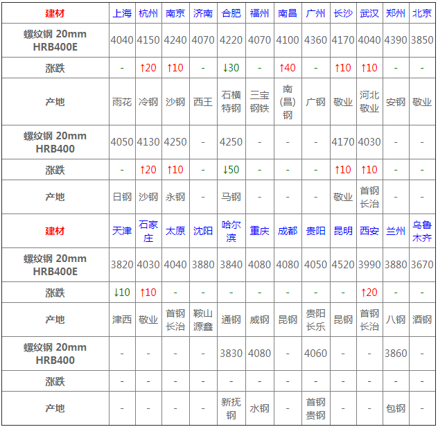 今建材價格寬幅上調,期貨及原料走勢堅挺,提振市場情緒,現貨市場同步跟漲為主,但下游入市拿貨謹慎,預計短期隨行調整;