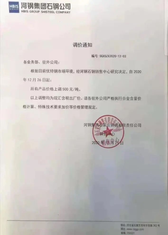 沙鋼上調(diào)200,多家鋼廠500、600的漲