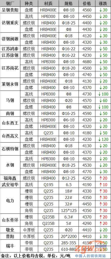 鋼廠調價:再降120!30家鋼廠最新調價! 預測:還得下降!
