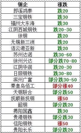 1月15日江陰華潤制鋼廢鋼下調20-30:爐一3230,剪廢一3120,小廢一2980,統廢2650,鋼筋壓塊3090,鋼絲繩卷2930,廢鋼壓塊一2920,粉碎料3150,含稅 。