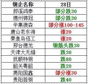 1月28日唐山老東海上調(diào)20:精品鋼3100,優(yōu)質(zhì)a3070,優(yōu)質(zhì)b3050,優(yōu)質(zhì)c3030,重a3000,重b2970,重c2930,短尺剪切料2880,三角片,瓜子料3030,1-2厚冷板小料3030,08鋁小料2970,不含稅。