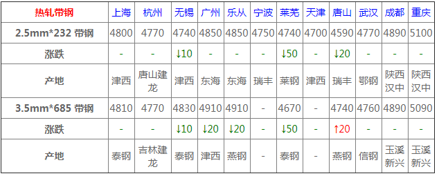 今熱卷弱勢運行,沈陽4700跌20,鞍山4750跌20,長春4750跌20,哈爾濱4840穩(wěn);華南熱卷偏弱調整,樂從4860-4870跌10,廣州4860-4870跌10,柳州4890跌10,南寧4890跌10;華北熱卷價高位松動,開平板基價4780,3.5-11.75安豐/燕鋼/縱橫熱卷資源報價4730-4770,邯鄲4770,天津4770-4820,中鐵直發(fā)4750-4760,博興現貨4770-4800。今早開盤弱穩(wěn)觀望,盤中期貨走勢不佳,現貨采買謹慎觀望,商家松動10-20。今價弱穩(wěn)運行。期卷主力震蕩向弱,現貨商家多持幣觀望,整體交投顯冷清,市場高位資源低靠。料短期小幅偏弱調整。