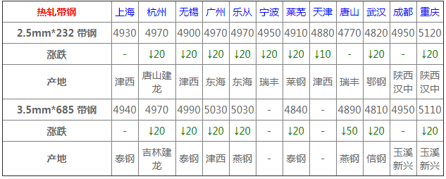 今唐山啟動一級紅色預警響應落實停限產措施,環保管控繼續加強,唐山鋼坯暫穩報4390元/噸。早盤期卷持紅震蕩,現貨商家多積極出貨為主,全國熱軋市場穩中弱調10-50元,華北市場回落20-50,終端需求疲軟依舊,資源銷售偏差,唐山開平板4900跌40,卷資源4880-4890、天津4860-4800跌20、邯鄲4840-4850跌50,普陽SPHC3.0*1010出廠價5000平穩。綜合考慮尾盤期貨跳水濺起悲觀心態,預計短期華北熱卷市場價格高位回落。