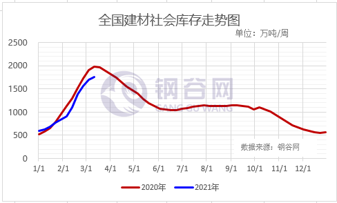 縱觀國(guó)際宏觀市場(chǎng),美國(guó)1.9萬(wàn)億美元刺激法案的正式簽訂,推升市場(chǎng)通脹預(yù)期。轉(zhuǎn)至國(guó)內(nèi)市場(chǎng)、兩會(huì)透露新一輪擴(kuò)內(nèi)需施工圖將加快落地。基本面、唐山限產(chǎn)重磅來(lái)襲,原料坍塌成本下移,本周現(xiàn)貨市場(chǎng)過(guò)山車行情再上演,鋼價(jià)波動(dòng)頻繁,呈現(xiàn)漲多跌少,震蕩上行的走勢(shì)。近期原料價(jià)格走勢(shì)趨弱,對(duì)成材價(jià)格的支撐作用有所下降。不過(guò),在環(huán)保限產(chǎn)預(yù)期下,局部地區(qū)供應(yīng)端的收縮對(duì)市場(chǎng)信心帶來(lái)提振,資本市場(chǎng)的大起大落也對(duì)現(xiàn)貨價(jià)格形成了干擾。即將進(jìn)入三月第三周,目前各地需求釋放節(jié)奏并不一致,貿(mào)易商有意兌現(xiàn)前期利潤(rùn)。目前市場(chǎng)對(duì)3月中下旬的需求仍抱有期待,市場(chǎng)頻繁漲跌不利于行情演繹,也預(yù)示著市場(chǎng)心態(tài)并偏謹(jǐn)慎。在多重因素的影響下,市場(chǎng)很難走出趨勢(shì)性的行情,“供需博弈,區(qū)間波動(dòng)”仍是主旋律。值得注意的是,在近期建筑鋼產(chǎn)量環(huán)比增加的情況下,本周國(guó)內(nèi)社會(huì)庫(kù)存緩慢下降,后期去庫(kù)存的速度會(huì)將直接影響鋼價(jià)的高度,雖表觀需求持續(xù)回升,但仍未達(dá)到旺季釋放水平。綜上,預(yù)計(jì)下周鋼材價(jià)格高位震蕩。關(guān)注后續(xù)重大項(xiàng)目加速開工后對(duì)需求的提振情況。