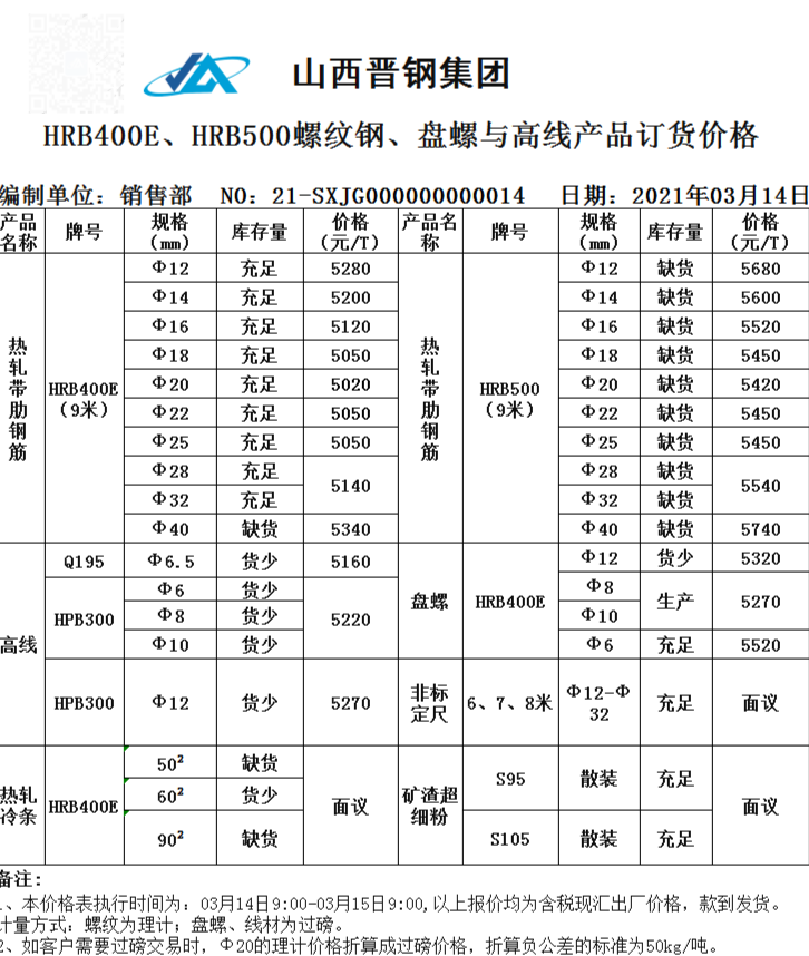 最新鋼廠調價 最新廢鋼調價 【滄州中鐵】3月14日起,滄州中鐵廢鋼價格跌50元。鋼筋壓塊3300,花板壓塊3300,鋼屑壓塊2830,8厚重A3280,6厚重B3230,重C3170未含稅。(單位:元/噸) 【唐山縱橫】3月14日起,唐山縱橫廢鋼跌50元。模具鋼3380法蘭片3380大轉子弓子板3320優質一級3380重A3300,優質鑄鐵3100,鋼板滾剪料3400,鋼板料一級3380鋼筋切粒3380干磨鐵3090,矽鋼片小料3090鋼筋壓塊3210特級破碎料3240,未含稅。(單位:元/噸) 【唐山老東海】3月14日起,老東海廢鋼所有料型跌50元。老東海廢鋼執行價:精品鋼3320優質A3280優質B3210優質C3210重A3180重B3150重C3110短尺剪切料3060三角片,瓜子料3210,1—2厚冷板小料3210,2厚以上沖料3240,08鋁小料3150未含稅。(單位:元/噸) 【燕山鋼鐵】3月14日起,燕鋼廢鋼個別跌30元。優質3460重A3420重B3360重C3320中A3380中B3300中C3260小型3015統料2715優質鑄鐵3300普通鑄鐵3100一級剪切料3000二級剪切料2960三-級剪切料2410,未含稅。(單位:元/噸) 【長治金燁鋼鐵廢鋼】3月14日,長治金燁鋼鐵廢鋼價格跌50元。優質3200,重廢10厚3150,中廢3100,普廢3050,工業拆解料3150油污件2850。(單位:元/噸) 【山西長信】3月14日05:00起,長信通知:廢鋼跌30元,破碎料跌50元。注:廢鋼,破碎料車輛下午改為六點之前進廠。(單位:元/噸) 【青島特鋼】3月14日,青島特鋼廢鋼接貨價跌40元。廢鋼執行價:工廠廢料II型3440元/噸;工廠廢料III型3390元/噸;工廠廢料IV型3260,含稅。8毫米以上1類3110,6毫米以上2類3080,4毫米以上3類3030,2毫米以上4類2920,未含稅。(單位:元/噸) 【后英鋼廠】3月15日起,后英鋼廠廢鋼執行價跌70元。純4-6厚以上3180,600/800尺寸,生鐵允許百分之十,質量要求嚴格。(單位:元/噸) 【河南舞鋼】3月14日零時起,廢鋼所有料型統一跌30元/噸。調整后重型3390元,中型3270元,小型3140元,輕薄料2490元)以上價格為承兌含稅價,其他政策不變。 隨著上周的過山車行情,期貨拉漲后又收跌,很多老鐵留言問下周鋼價如何走?在筆者個人看來,鋼廠與原料一直挺價,鋼價一時半會兒降不下來,只是會小幅度的回調出貨罷了。那么,周日各品種運行情況如何?咱們一起來看看! 周末各品種走勢及下周預測 【建筑鋼材】 周末建材市價主穩,個別資源窄幅調整,鋼企則積極挺價居多,市場表現稍有分歧,積極出貨和謹慎補貨并存,下游按需采購,成交表現一般。鋼企方面:永鋒/石橫穩,高義/立恒穩,首鋼長治降30等。市場方面:北京穩中偏強,上海主穩,青島主穩,太原弱穩等。市場窄幅調整,保持合理庫存。預計下周建材價格高位運行。 【板材】 周末板材市場價格弱穩運行。由于盤中原料鋼坯價格有所下調,部分市場中間商周末低價出貨以鎖定利潤。熱卷方面唐山熱卷周末下調約40元/噸,廣州市場下調約20元/噸。涂鍍價格周末主流穩,博興市場彩基鍍鋅小幅跌落。短期板材市場庫存持續消化中,原料近期波動較大,市場整體心態不穩,預計下周板材價格寬幅震蕩運行。 【型管帶坯】 周末型鋼價格整體先弱后穩。型鋼方面,周六穩中降50-60,周日正豐低靠40,角鋼漲20后成交不佳回落10,工槽主穩,現5-6.3#角4840-4850,8-20#槽4900-4950,14-20#工4900-4950;鋼管方面,周六主流降50,周日報穩觀望。市場成交偏弱,心態觀望,預計下周價格仍區間震蕩運行。 【結構鋼】 周末國內結構鋼市場弱穩運行,個別資源存10-20元/噸小幅松動,山東資源大戶直發萊鋼30-119mm5500-5520,西王50-260mm5190,廣富中棒4910,魯麗4920-4930,萊蕪FL4880-4900,濰鋼28-60mm基價5210,巨能中棒5300,青鋼5250-5300。目前鋼市觀望氛圍濃厚,庫存、資金等壓力下,多數鋼貿仍以讓利出貨為主,終端企業采買熱情不高,交投一般。不過,鋼廠方面挺價為主,加之剛需仍在,短期結構鋼市價或窄幅盤整運行為主。 你認為呢?