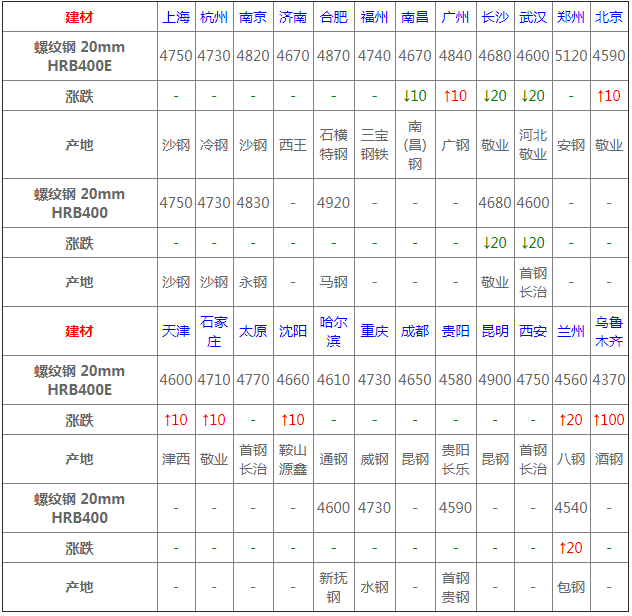 今日建材價格窄幅運行,周邊主導市場價格小幅松動,受此影響,市場報價也略有松動。據悉,本周下游需求啟動緩慢,市場庫存小幅去庫,連續一周的陰雨天氣仍對市場成交起到一定抑制作用,貿易商心態以快進快出為主,整體心態較為謹慎。綜合來看,短期市場價格還是以窄幅震蕩為主。