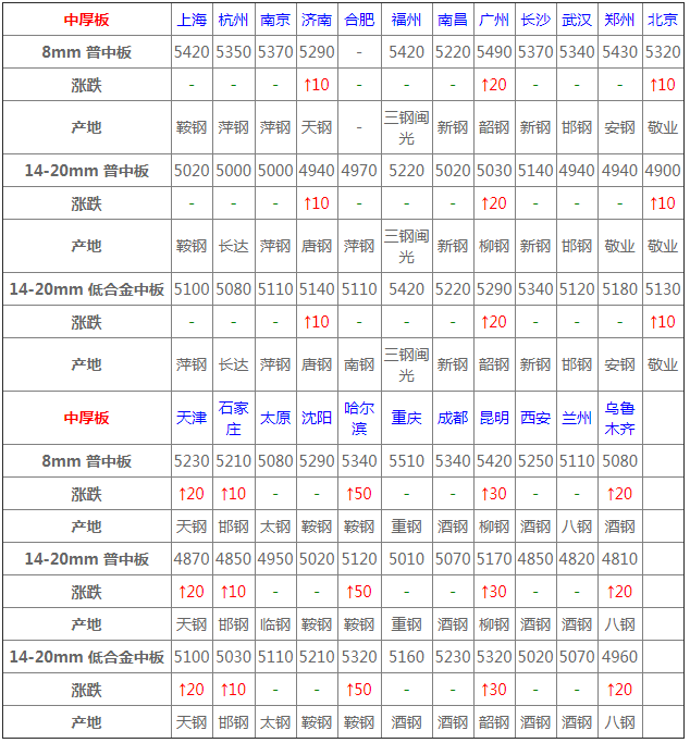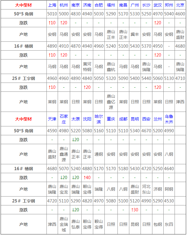 今型價全面趨漲。下游普遍恐高,補庫操作有所延遲,但受鋼坯支撐偏強提振,中間商拿貨積極,短期型價將低位上揚調整。