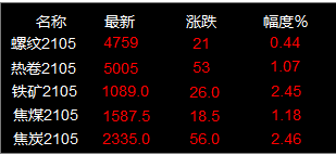 受到鋼坯連續(xù)漲價(jià)提振,黑色系持紅運(yùn)行,熱卷沖上5000大關(guān),截至收市,期螺上漲21收?qǐng)?bào)4759,期卷上漲53收?qǐng)?bào)5005,鐵礦石上漲26收?qǐng)?bào)1089,焦煤上漲18.5收?qǐng)?bào)1587.5,焦炭上漲56收?qǐng)?bào)2335。唐山鋼坯昨日漲20元/噸,今早又漲20元/噸,現(xiàn)報(bào)4490元/噸。