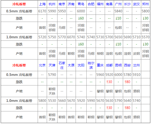 3月23日冷軋板卷價(jià)格:穩(wěn)中下行;