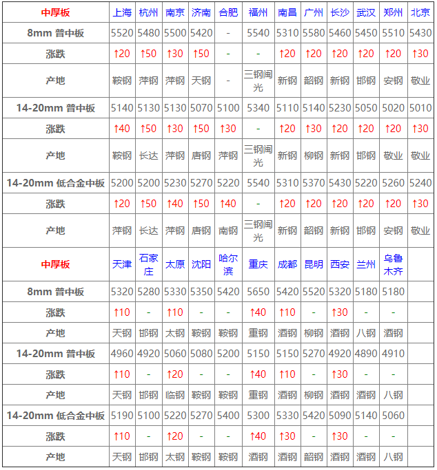 今日中厚板市場價格穩后上調,期貨市場一路攀升,商家隨行上調價格,市場鮮有成交,考慮成本端高位支撐,預計短期偏強整理。