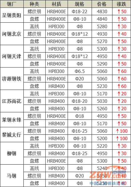 水鋼建材上調50元/噸