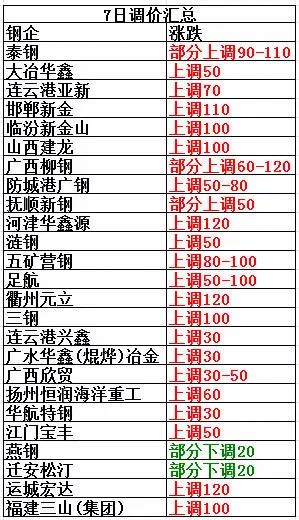 4月7日足航廢鋼上調50-100:新色邊角料鋼筋頭,10厚以上3100,焦鋼,生鐵3070,重廢6-8厚3070,中廢4-6厚3010-3030,輕廢2-3厚2880-2930,門市毛料2米以內中上2730,中等2680,車屑2880,汽車殼棉花包2580,彩鋼瓦2480,易拉罐2430。