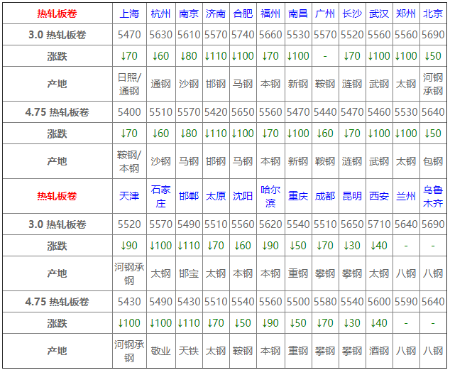 今全國熱扎市場松動調整,幅度50-140元,早盤期卷跌幅過百,現貨商家心態偏空讓價出貨為主,終端盤詢較積極,但實際成交顯觀望;