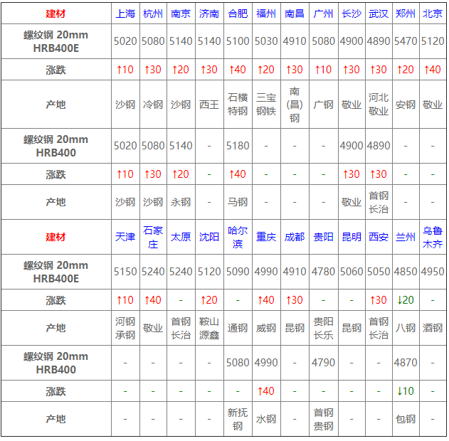 4月14日建材價格:偏強運行;