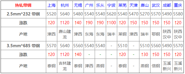 今全國帶鋼主流上行,華北主導鋼廠主流漲30,唐山窄帶漲20后成交順暢盤中追漲30累漲50,部分廠家出清日產,華東華南上行調整;