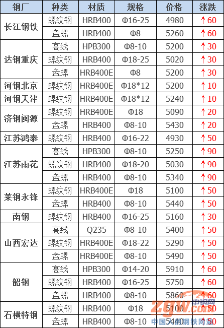 長江鋼鐵建材上調60元/噸