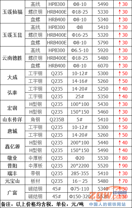 玉溪玉昆建材上調30元/噸