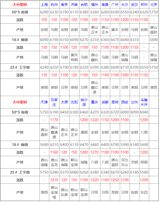 5 5月11日熱帶價格:堅挺整理; 今熱帶價格主流上漲,午后期貨回漲,高位成交平平,商家逢高出貨意愿增強。邯鄲、天津市場變動幅度不大,商家操作顯謹(jǐn)慎。考慮成本端持穩(wěn)偏強,預(yù)計明繼續(xù)高位運行。 6 5月11日型材價格:高位運行; 今型價穩(wěn)中偏強。成本支撐力度仍存,但下游需求有限,市場高位成交乏力,中間商觀望心理明顯,短期型價將高位調(diào)整運行。