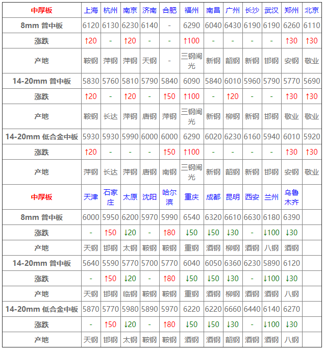 4 5月21日中厚板價(jià)格:漲價(jià)居多; 今全國(guó)中板穩(wěn)中震蕩調(diào)整,幅度30-100左右,下游謹(jǐn)慎采購(gòu),市場(chǎng)整體成交偏淡,商家低位心態(tài)趨穩(wěn)觀望,個(gè)別漲跌整理;