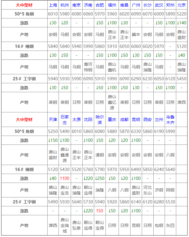5 5月21日熱帶價(jià)格:偏強(qiáng)運(yùn)行; 今全國(guó)帶鋼偏強(qiáng)為主,華北主導(dǎo)鋼廠漲50,唐山窄帶穩(wěn)后部分可盤中追漲50,漲后高位一般有弱,僅個(gè)別出清日產(chǎn),華東華南漲跌穩(wěn)均現(xiàn); 6 5月21日型材價(jià)格:繼續(xù)走低; 今型價(jià)主流下探。期貨偏弱震蕩,成本端支撐疲軟,需求釋放緩慢,市場(chǎng)觀望心態(tài)上升,操作謹(jǐn)慎。短期型價(jià)將弱穩(wěn)運(yùn)行。