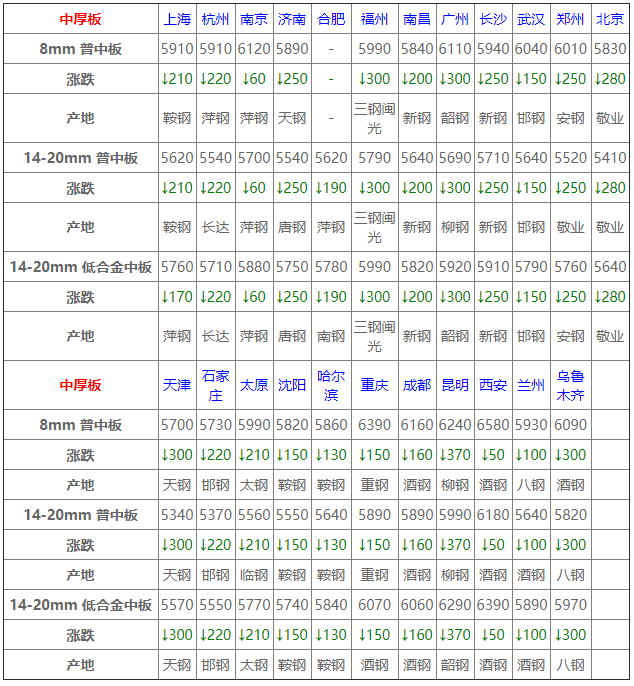 今全國中板弱勢調整,幅度50-200左右,下游剛需采購,整體成交偏弱,商家心態(tài)趨謹慎,操作上隨行就市為主;