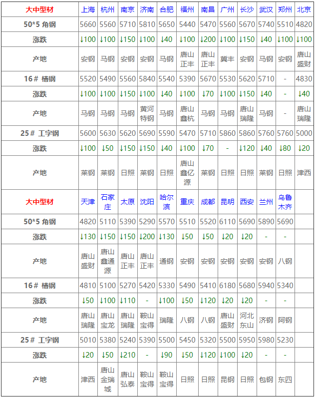 今全國中板延續弱勢,幅度50-100左右,商家心態偏弱,市場多降價出貨為主,下游用戶拿貨有所遲疑,整體成交清淡;