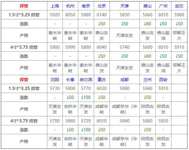 6月1日管材價格:穩中整理;