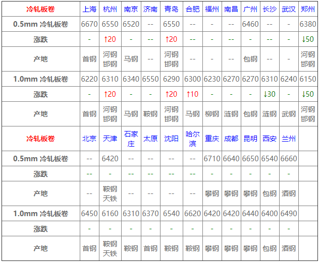 今全國冷軋穩漲跌均現,幅度20-50,各地商家心態不一,熱卷期貨拉漲,提振現貨市場,商家出貨心態加強,然終端觀望居多,剛需拿貨為主,市場成交比較平淡。
