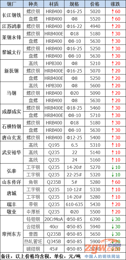 2021年6月10日鋼廠調價通知:調價:再漲60!27家鋼廠最新調價!