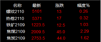 昨日夜盤期螺就開始止跌反彈,商家情緒略有好轉,今日早盤期鋼小幅下探,開盤后,再受各消息影響,期螺震蕩走高,午后翻紅,雙焦受全國安全大檢查升級影響繼續拉漲。截至收盤,期螺上漲13收報5101,期卷上漲17收報5371,鐵礦石上漲12.5收報1223.5,焦煤上漲45收報2009.5,焦炭上漲44收報2753.5。唐山鋼坯昨日暫穩,報4940元/噸,網優廢鋼統計17日12漲37跌,今早6漲14跌。
