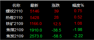 受黨慶宏觀消息提振,昨日夜盤大面積飄紅,黑色系早盤也一度反彈,盤中期螺沖高回落,截至收盤,期螺上漲39收報5146,期卷上漲28收報5428,鐵礦石上漲12.5收報1166,焦煤下跌38.5收報1910,焦炭下跌58.5收報2573。唐山鋼坯昨日價格穩,現報4910元/噸。網優廢鋼統計1日16漲6跌,今早7漲3跌。