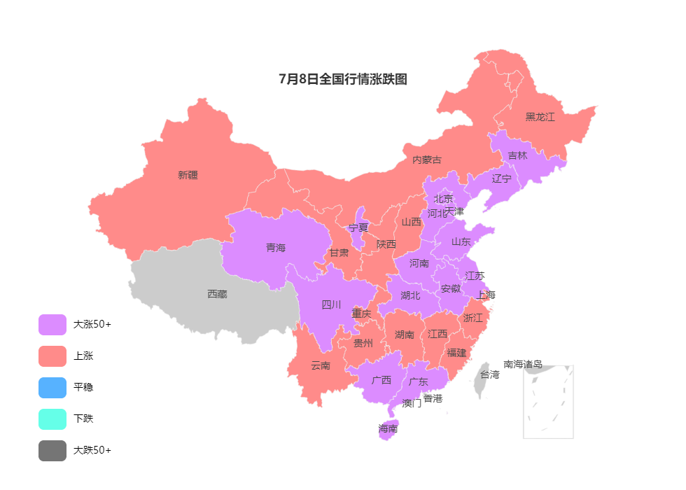 7月8日鋼鐵價(jià)格漲跌圖:主流上漲