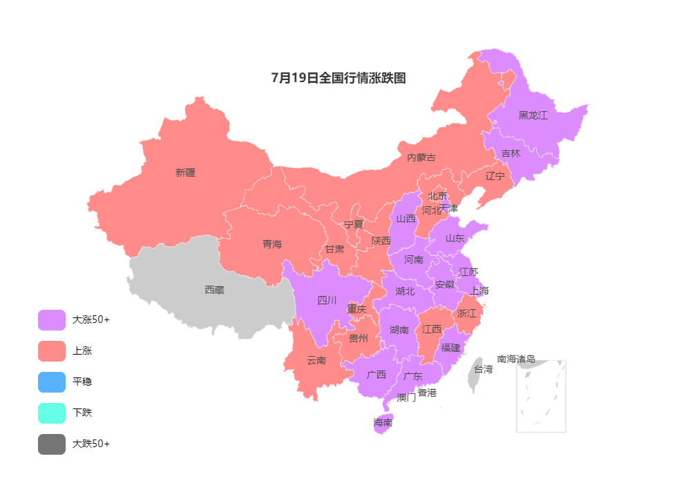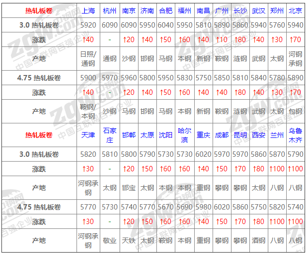 7月19日鋼鐵價格漲跌圖:主流上漲 7月19日建材價格:穩(wěn)中上漲; 今建材穩(wěn)中上漲,幅度40-100,周五夜盤期螺走勢強(qiáng)勢拉漲且今日尚可,受此影響今日建材價格走勢均大幅補(bǔ)漲,然而市場成交不佳,預(yù)計建材價格盤整為主; 2 7月19日熱軋板卷價格:上行為主; 今全國熱卷上行為主,幅度20-100,市場補(bǔ)漲周末為主,早上市場出貨偏弱,高位成交乏力,部分地區(qū)價格小幅回調(diào),整體交投顯弱;