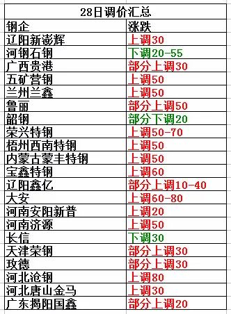 7月28日遼陽鑫億廢鋼價格部分上調10-40:1-3厚3160-3190,2-4厚3280-3320,3-5厚3330-3370,4-6厚以上3390-3430,6厚3450-3490,8厚3500-3540,生鐵鋼件3240-3280,二級破碎3220-3260,雞籠壓塊停收,刨花3020-3060,08鋁壓塊、散片3460-3500,暖氣片3240-3280。