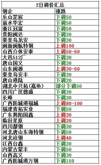 8月2日四川都鋼鋼鐵公司下調(diào)30:生鐵3230,重廢8厘3480,6厘3450,中廢5厘3410,4厘3380,3厘3300,2厘3180-3230,不含稅