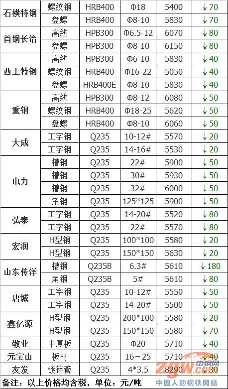 2021年8月3日鋼廠調價通知::調價:跌180!26家鋼廠價格變動!