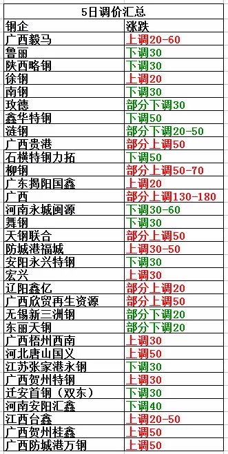 8月5日廣西毅馬上調(diào)20-60:鋼筋沖粒3480,新鋼板料3480;模具鋼3480;熱軋沖子、冷軋沖子、汽車(chē)沖片3540;機(jī)生鐵3460;舊法蘭3460;鋼筋頭、汽車(chē)大梁、前后橋3400;熱、冷軋沖片3500;硅鋼片3540;風(fēng)割料3400;一級(jí)剪切料3370;二級(jí)剪切料3180,不含稅。