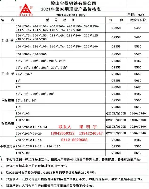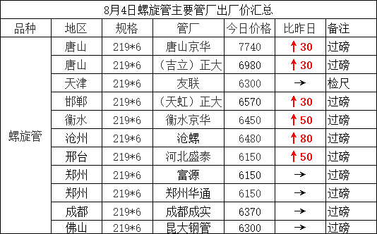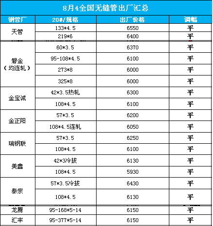 ? 周一至周五定期推送:鋼廠部分產品調價信息,本地鋼材價格信息。型鋼板材、無縫鋼管、不銹鋼材料、有色金屬及鐵合金爐料等諸多優質內容,微網更有企業推薦,物資求購信息,是重服務的本地微信平臺!關注我們會有更多的驚喜!2021年8月5日|鋼廠調價|鋼廠出廠價格|鋼廠調價信息|鋼廠調價通知 匯總...截止發布時間(13:00),以下數據(來源中鋼網、蘭格鋼鐵網等)僅供參考。
