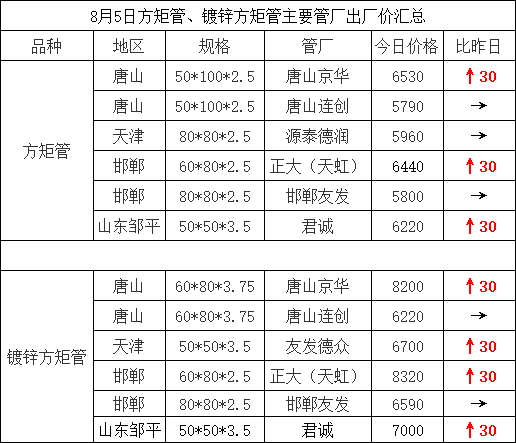 【鋼廠重磅】8月6號鋼廠部分產品出廠價格及鋼廠廢鋼價格調整信息