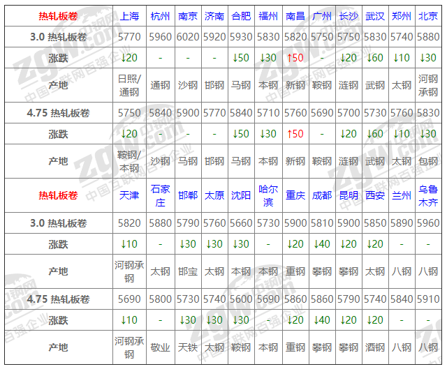8月6日鋼鐵價格漲跌圖:穩中漲跌 8月6日建材價格:穩中下行; 今建材穩中下行,幅度10-40,近期市場價格波動頻繁,商家謹慎操作,庫存紛紛保持低位。短期市場進入供需雙弱的格局,加上市場恐高心態,預計周末市場以出貨為主,平穩運行; 2 8月6日熱軋板卷價格:下行為主; 今全國熱卷下行為主,幅度10-50,期卷持綠震蕩,市場商戶操作不一,高位成交乏力,低位出貨控量,整體市場交投氛圍一般,商戶心態尚可;