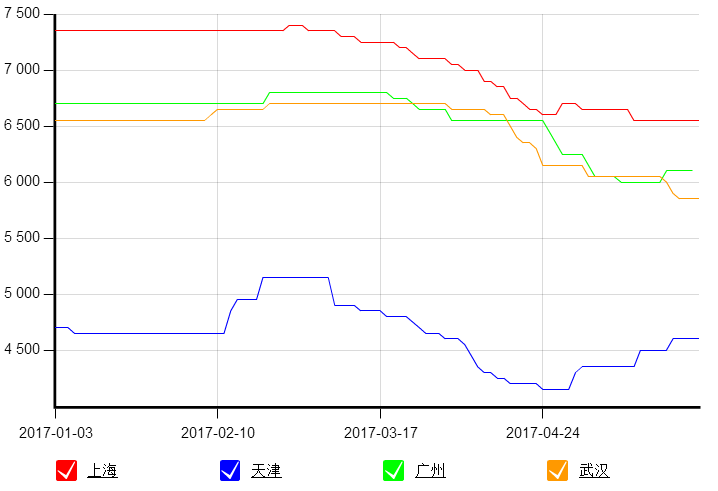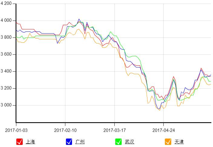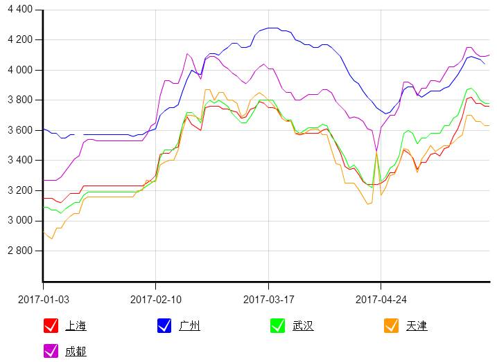 2017年1月1日~5月27日主流品種價(jià)格走勢(shì)