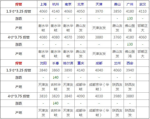 7 5月27日管材價(jià)格:穩(wěn)中調(diào)整; 今管材穩(wěn)中趨弱;原料端持穩(wěn)前行,據(jù)貿(mào)易商反饋,市場(chǎng)交投氛圍積極向好,下游需求尚可然庫(kù)存緊俏,供大于求的市場(chǎng)現(xiàn)狀讓廠商對(duì)后市持謹(jǐn)慎態(tài)度,因此預(yù)計(jì)焊管市場(chǎng)或?qū)⒅鞣€(wěn)運(yùn)行。
