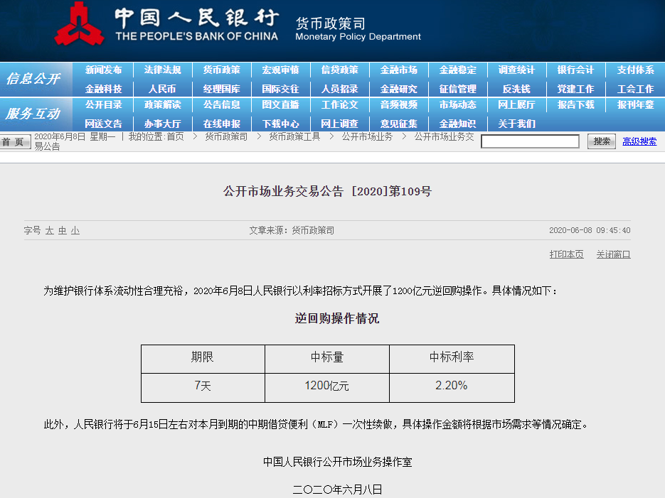 央行1200億元  緩解壓力