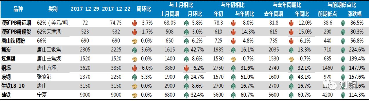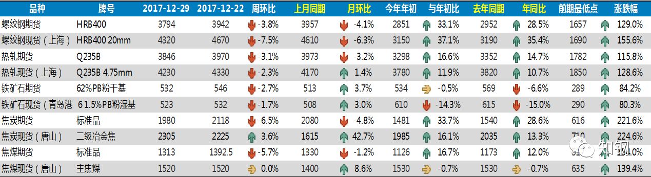圖表4 鋼材和原材料主要品種期現(xiàn)貨價(jià)格變化情況